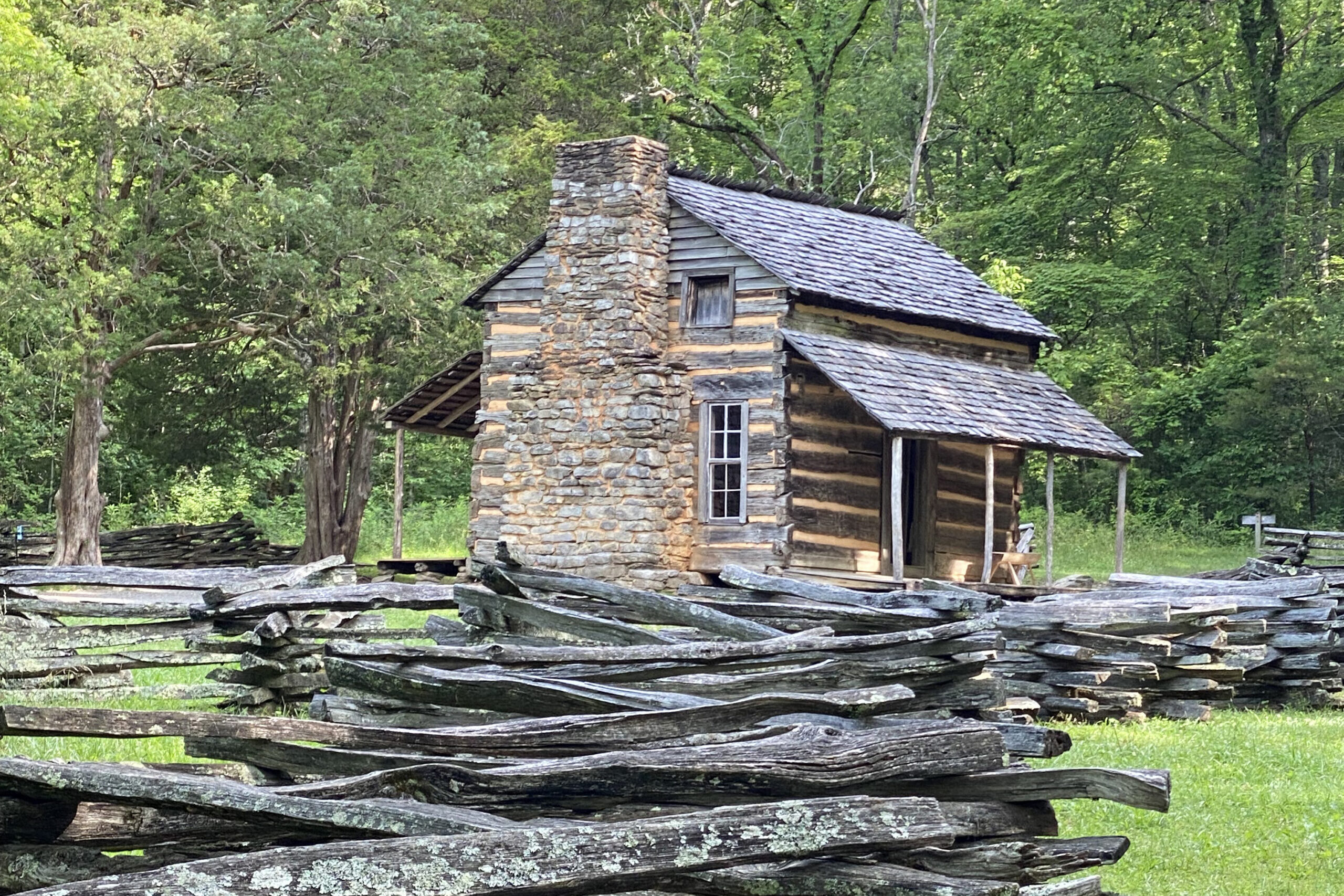 We also did the road tour of Cades Cove, which is known for its views and wildlife. I saw black bears, deer, wild turkeys, a friendly crow, and numerous insects including cicadas. Cades Cove was once home to a self-sustaining community and some of the old buildings still exist. We also drove on the Roaring Fork Motor Nature Trail and hiked to Grotto Falls.